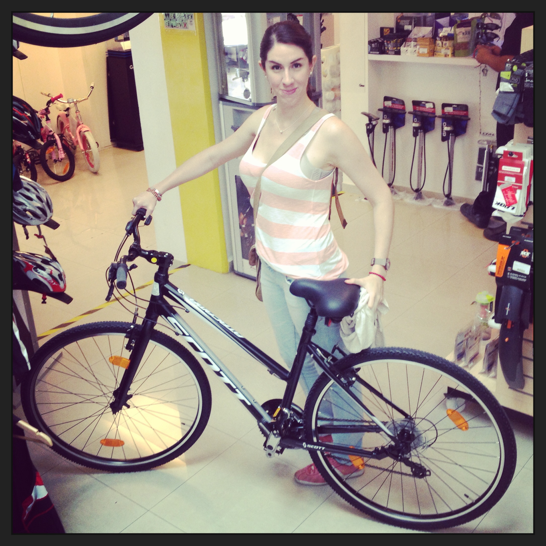 Dos meses después, mi querida Bimex me pareció pequeña y pensé en cambiarla. Seguía sin saber un demonio de bicis, pero el sentido común me lo dictaba: ya no podía subir más el asiento y sentía que podía estirar más las piernas, más de una vez me caí al intentar salirme –like a lady- de la bici en alto total (la pierna se me atoraba entre el cuadro y el manubrio y tenía que hacer una contorsión china para lograrlo, pero el peso de la mochila me ganaba), mis pies de 27 cm se atoraban con la rueda al dar vueltas muy cerradas y tronaron los pedales de plástico en menos de un mes. Ahora que lo pienso, fue un milagro que me adaptara a mi bici. Pero, como milenios de evolución lo demuestran, el cuerpo se adapta a casi todo.